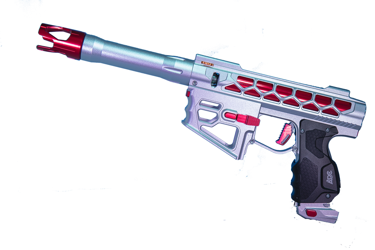 All components CNC machined from aircraft grade T6 aluminum.New proprietary hoseless bolt drive system.Extremely efficient 3000+ shots per 48/4500 bottle fill.100 psi operation for 1.2 Joule with .2G bbs.155mm 6.03mm tight bore barrel.Integrated on/off ASA for quick degassing and fast, safe bottle installation and removal.Easily adjustable high-pressure regulator (HPR) located in the grip frame for unparalleled flow at low pressure operation.Physical switch for safety/trigger trainer mode.Easily adjustable high-pressure regulator (HPR) located in the grip frame for unparalleled flow at low pressure operation.Fully adjustable trigger including pre travel and post travel.Magnetic interchangeable trigger face system for tooless trigger change.Detachable trigger guard for blade style triggers.Ambidextrous magazine release.Easy adjust fly wheel hop up that uses industry standard bucking and barrels for use at any range of engagement. Interchangeable with the Maxx M1 hop up system.Tool less outer barrel and body take down for easy access to hopup components and bolt for hassle free, field stripping and maintenance.This system requires a 350-550psi output reg/air tank to function properly. Any pressure over 550psi will damage the ARC. Our recommendation would be a Ninja Ultralite, Pro V2 or Pro v3, with the shims adjusted to the lowest output setting. The piston on the Ninja SLP is not long enough to engage with the ASA on the ARC