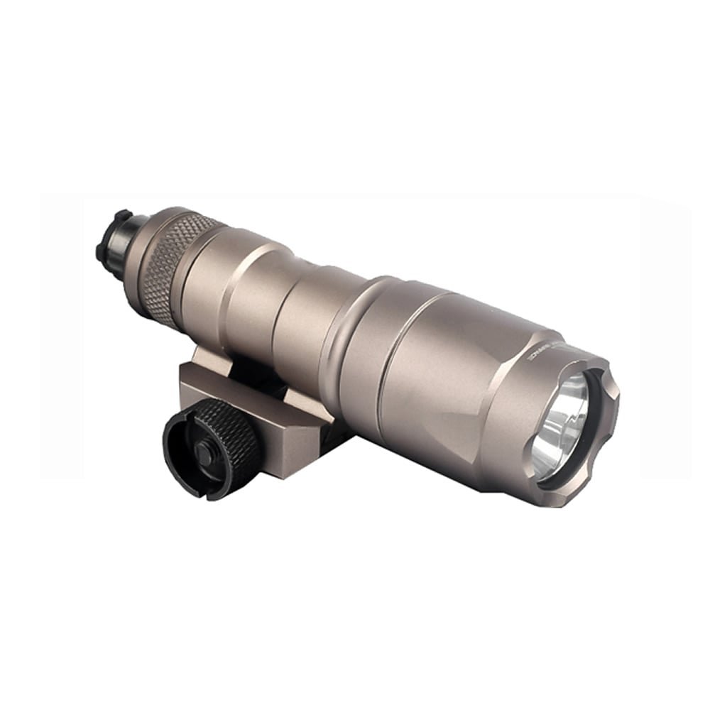 Long lamp made of high quality CNC aluminum. Thanks to its LED technology, it offers a luminous flux of 300 Lumens in a pocket format! Its tempered glass bulb is extremely resistant.This lamp has a removable assembly for Picatinny rail, and 2 types of press button for its operation which allow several types of ignition:By simply pressing the button on the back of the lamp (on/off, flash)By pressing the remote switch pad, which can be positioned wherever you want, and which replaces the button at the back of the lamp (on/off, flash)Works with 1 CR123A battery (not included)