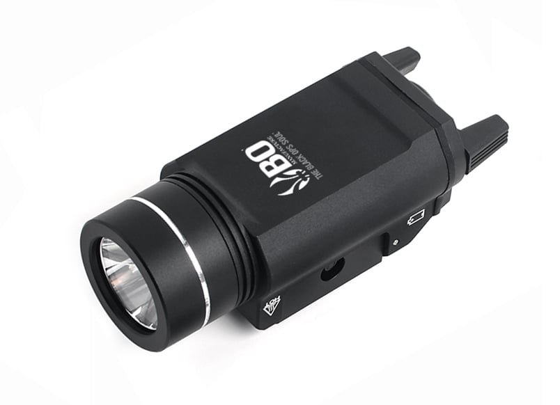 Ultra compact lamp made of high quality CNC aluminum. Thanks to its LED technology, it offers a luminous flux of 220 Lumens! Its tempered glass bulb is extremely resistant.This TLR lamp has an integrated mounting of 21mm for Picatinny rail, and its controllers are ambidextrous (once the lamp is mounted on a GBB, it is triggered by simple pressure with the index finger).Delivered in a rigid BO Manufacture hardcaseWorks with 2 CR123A batteries (not supplied)
