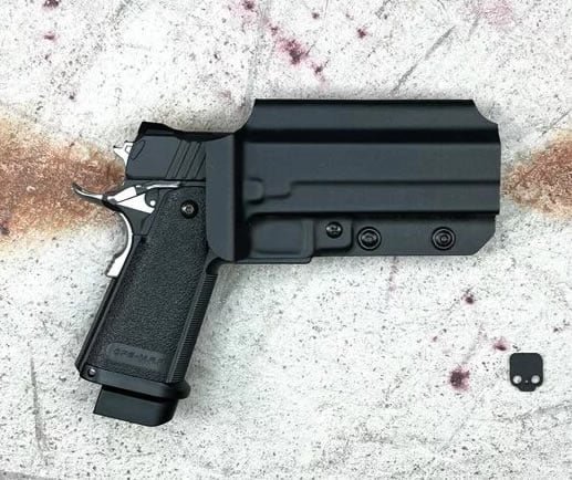 Our DC-1 Series Hi Capa Holsters use the trigger and lower frame for retention meaning we have made one holster to fit them all. They have been designed using in-house scans of the actual weapon, they are then formed and finished by hand. Following rigorous testing, we know each and every holster will hold up to even the most brutal of play styles.The DC-1 Series Universal Hi Capa Holsters are confirmed to fit all standard makes and models. Every Kydex holster that leaves us is formed from an in-house designed mould andismanufactured entirely in the UK.These holsters are manufactured entirely in the UK from genuine 2mm P1 Kydex.Features:Made of genuine 2mm Thick KydexAccepts slide mounted red dot sights(RMR Cut)Adjustable Retention for a tailored level of fitmentAccepts Suppressor Height SightsAccepts Threaded BarrelsMounting:All of our DC-1 Seriers holsters are able to attach onto mounting platforms which use a 3-screw system these include, but are not limited to:SafarilandBlackhawkFMAG-Code and G-Code RTIBlade-Tech.We set the retention screw to a standard fit, we suggest you alter it if needed and then use a small amount of Loctite or Super Glue to make sure it stays tight.