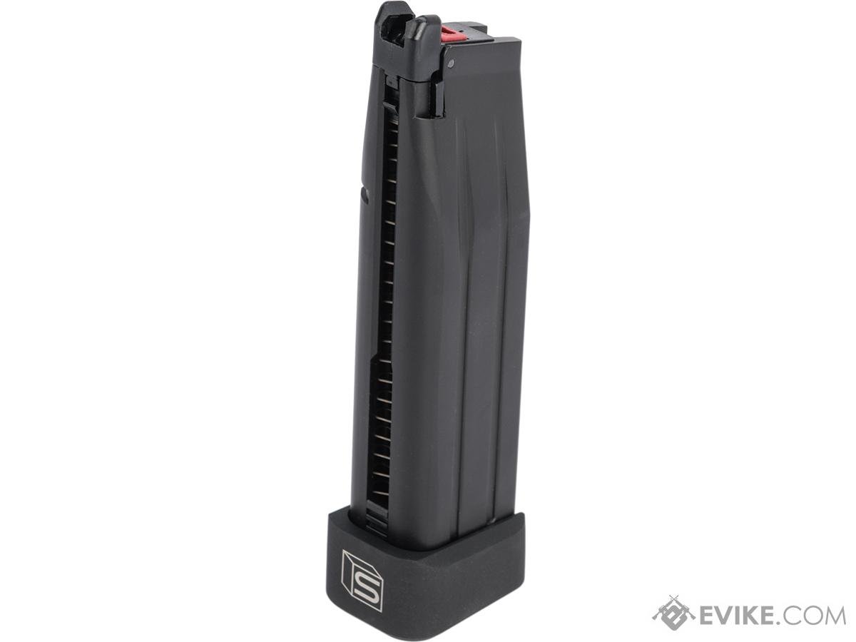 30 round capacityMetal alloy constructionEnhanced outlet gasketCNC machined aluminum extended bumperCompatibility: Armorer Works, WE-Tech, Tokyo Marui and other similar Hi-Capa Airsoft pistolsCapacity: 30 roundsGas Type: CO2