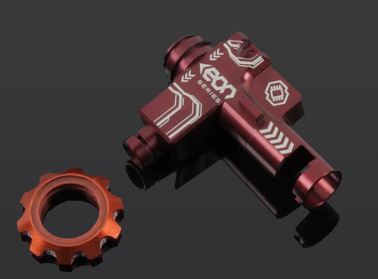 EON Hop-Up Chamber- Highly precise CNC machined hop-up chamberstuns withFPS precision & consistency, ensures a perfect sealing and BBs feeding.Revolutionary TDC system of hop-up adjustment always gives you an ideal and horizontal placement of hop-up nub, what makes the BBs’ flight trajectory perfectly straight.Tight tolerances of crucial dimensions let for constant FPS level and stable working of the hop-up system. Redesigned c-clip, CNC made from POM material, gives an anti-rotation of the barrel which enables simple and error-free assembling.Precise and stable hop-up adjustment thanks to the first-class TDC (Top Down Centered) systemAlways horizontal and straight BBs’ flight trajectoryNo tightening effect on hop-up bucking collarNo effect of rolling up the bucking collarPerfect seal with hop-up buckings (no Teflon fix needed)Full range of regulation of hop-up force, no matter what kind of hop-up nub you useStrong and tight CNC c-clip which ensures stabilization of the barrelPerfect axial alignment of the barrel in the chamberExtremely precise hop-up force adjustment thanks to the ergonomic rotary dialPerfectly fitsGATE PULSAR S HPA EngineandGATE EON Complete V2 GearboxIncludes:1 x CNC Aluminum Hop-up Chamber1 x CNC POM Hop-up Arm1 x CNC POM 4.5mm length Precision R-Hop Nub1 x CNC POM 6mm length Precision R-Hop Nub1 x Mounting screw1 x CNC POM anti-rotation C-Clip1 x CNC POM barrel spacer1 x CNC POM nozzle sleeve10x o-ring space