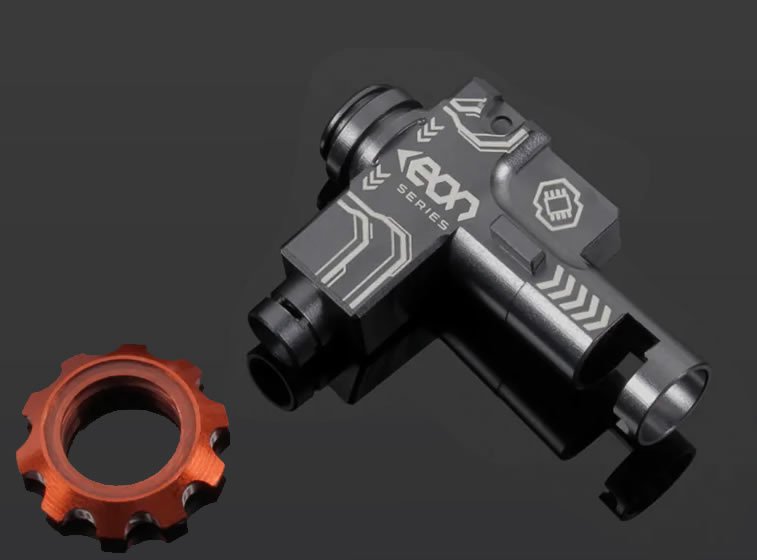EON Hop-Up Chamber- Highly precise CNC machined hop-up chamberstuns withFPS precision & consistency, ensures a perfect sealing and BBs feeding.Revolutionary TDC system of hop-up adjustment always gives you an ideal and horizontal placement of hop-up nub, what makes the BBs’ flight trajectory perfectly straight.Tight tolerances of crucial dimensions let for constant FPS level and stable working of the hop-up system. Redesigned c-clip, CNC made from POM material, gives an anti-rotation of the barrel which enables simple and error-free assembling.Precise and stable hop-up adjustment thanks to the first-class TDC (Top Down Centered) systemAlways horizontal and straight BBs’ flight trajectoryNo tightening effect on hop-up bucking collarNo effect of rolling up the bucking collarPerfect seal with hop-up buckings (no Teflon fix needed)Full range of regulation of hop-up force, no matter what kind of hop-up nub you useStrong and tight CNC c-clip which ensures stabilization of the barrelPerfect axial alignment of the barrel in the chamberExtremely precise hop-up force adjustment thanks to the ergonomic rotary dialPerfectly fitsGATE PULSAR S HPA EngineandGATE EON Complete V2 GearboxIncludes:1 x CNC Aluminum Hop-up Chamber1 x CNC POM Hop-up Arm1 x CNC POM 4.5mm length Precision R-Hop Nub1 x CNC POM 6mm length Precision R-Hop Nub1 x Mounting screw1 x CNC POM anti-rotation C-Clip1 x CNC POM barrel spacer1 x CNC POM nozzle sleeve10x o-ring space