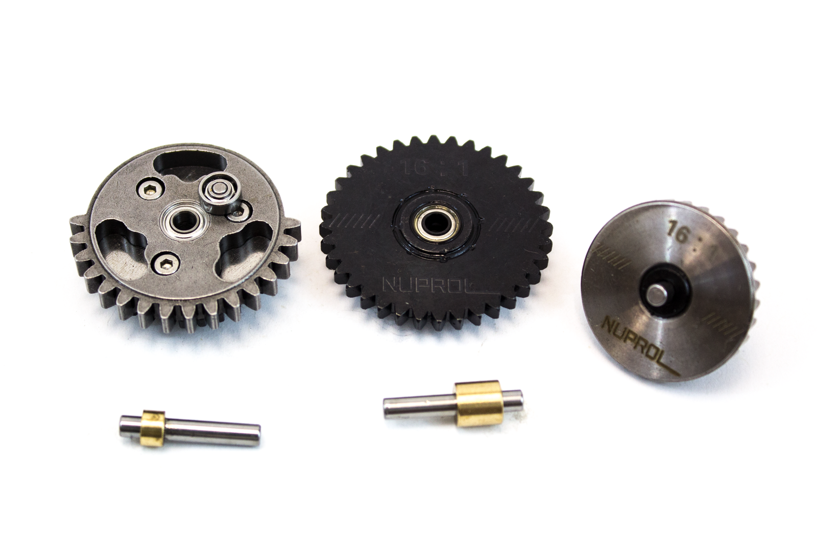 CNC machined 16:1 ratio Ultra High Speed Gear Set for V2 and V3 gearboxes.Built in bearings on the Spur & Sector gears reduce resistance and help increase speed.