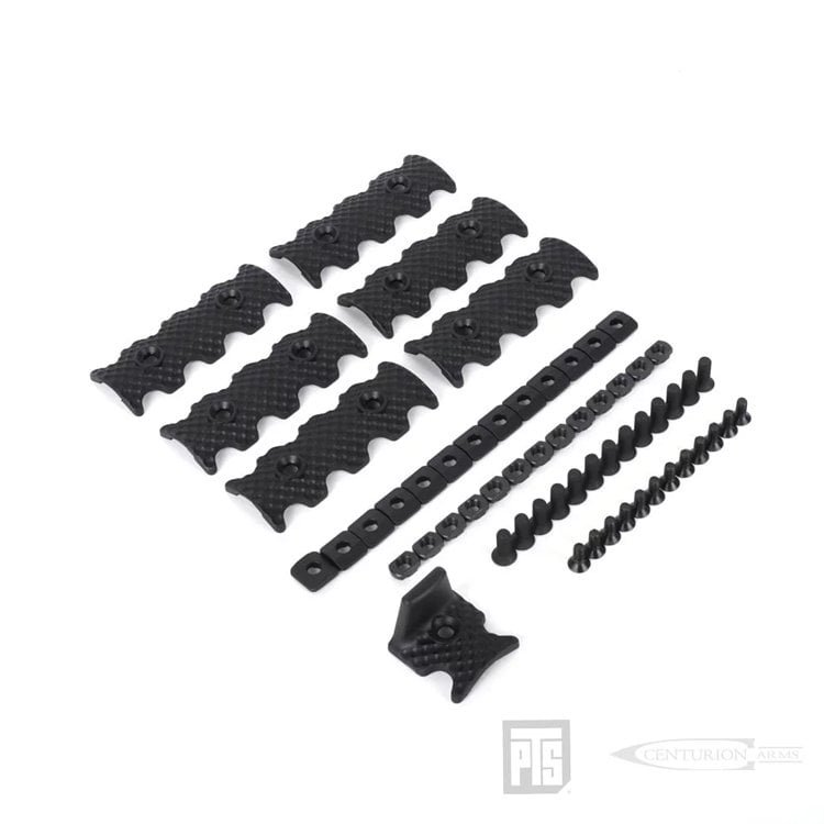 The PTS Centurion Arms CMR Accessories are made of DupontZytel High-Performance Reinforced Polymer. Their lightweight and small profile helps to maintain a lightweight platform with minimal bulkiness added to the slender CMR rail’s cross-section. The polymer accessories adhere to the K.I.S.S. (Keep It Simple Stupid) principle and directly mount to the PTS CMR (M-Lok) with threaded fasteners making them easy to install and modify to customize your rifle for your shooting needs. These accessories are interchangeable without having to utilize back plates or to dismantle the rail system itselfhus staying true with the K.I.S.S. system.The Centurion Arms CMR rail covers have been given a unique golf ball style texture on its surface, providing a very firm grip for the end user hands. They maintain as low a profile as possible and their semi-circular edges correspond along the ventilation holes of the rail. The rail covers have score lines on the back to allow the user to custom cut it to a shorter length to fill in the gap between other accessories.The CMR hand stop also has a golf ball dimple textured surface for a secure grip and only requires a single screw to bolt it down. Its design follows closely to that of the rail cover so they will both transition with each other very well when placed next to one another. The hand stop can be utilized in the front of the rail to grant the ability to place the hand forward without the worry of slipping off the rail.Specification:Color: BlackMaterial: DupontZytel High-Performance Reinforced PolymerPackageRail Cover (x6)Hand Stop (x1)Screw (x13)DimensionHand Stop 32 x 30 x 25mm (approx.)Rail Cover 83 x 29 mm (approx.)WeightHand Stop 5.5gail Cover – 8gCompatibility: PTS Centurion Arms CMR Rail Systems (M-Lok)Disclaimer: This product is for airsoft, training, and stimulation only. Please be aware that this product is not compatible with real firearms. Users should be alert that airsoft products are potentially dangerous which can cause serious injury and even death. If user misused this product, PTS will not take any responsibility accordingly.