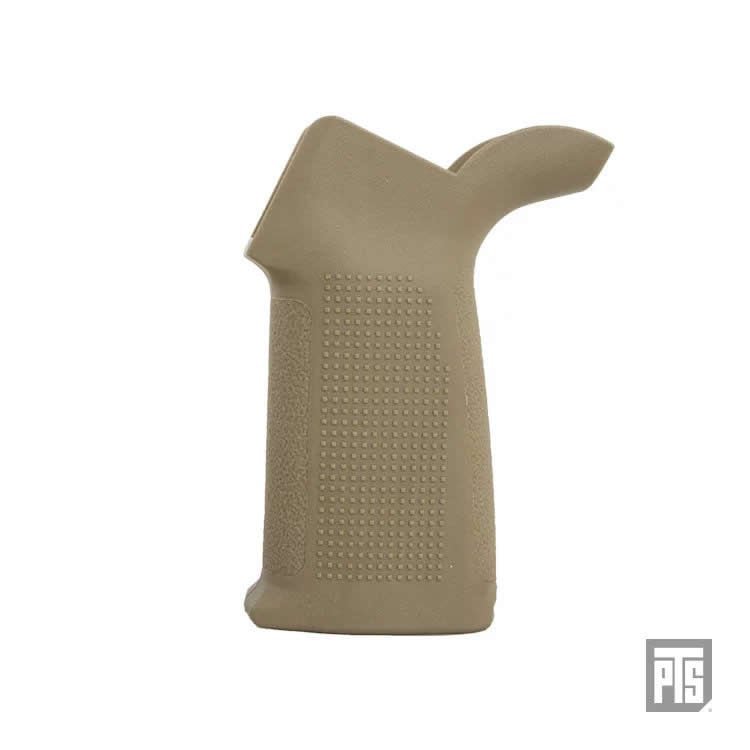 The PTS Enhanced Polymer Grip (EPG) is a simple yet highly functional polymer pistol grip for the M4/M16 platform. It features an ergonomically designed shape and is a fully ambidextrous design at a conventional grip angle. The beavertail extension naturally encourages a high hand hold under the receiver for maximum recoil control while maintaining comfort. The EPG’s distinctive texturing is optimized for strong and suitable grip under even adverse conditions.Features:Conventional M4 grip angle but with improved ergonomics.Aggressive 360texturing to increase surface traction but strategically panelled with comfort in mind.Base cap at the bottom of the grip allows internal grip access for general storage (GBBR version only). Pistol grip storageCompartment will accept CR123 batteries, tools, spare parts etc.Available for both AEGs as well as Airsoft Gas Blowback Rifles.Specification:Color -Black / Flat Dark EarthMaterial -High Performance Reinforced PolymerDimension -76 x 32 x 108 mm (without packaging)Weight -82g (AEG&GBB)CompatibilityGBB Version can compact to Tokyo Marui / WA / G&P/ KWA / KSC / VIPER / GHK / VFCAEG Version can compact to Tokyo Marui / G&P / VFC / WE /PTS RM4 ERG /GBLS DAS GDR15Disclaimer:This product is for airsoft, training and stimulation only. Please be aware that this product is not compatible with real firearms. Users should be alert that airsoft products are potentially dangerous which can cause serious injury and even death. If user misused this product, PTS will not take any responsibility accordingly.