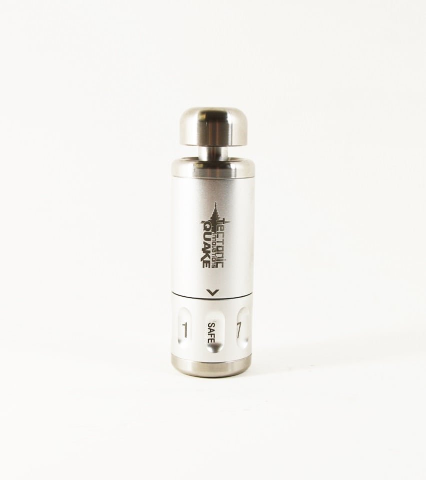 Tectonic Innovations Quake 8-way Impact Grenade Qu8keThere are currently two models of Tectonic Innovations grenade; the Qu4ke (3 shot + safety) and the Qu8ke (7 Shot+ Safety), giving you the choice between a tactical advantage and all out domination!The device itself is a simple yet effective design. At the top of the Quake is the stainless steel plunger, which upon impact forces itself into the grenade. This then pushes the toughened firing pin into your .209 primer, which is held in place by the aircraft grade alloy multi-shot base. The stainless steel core is then beautifully presented in an anodised alloy casing. After all, whats the point of airsoft kit if not to look awesome?