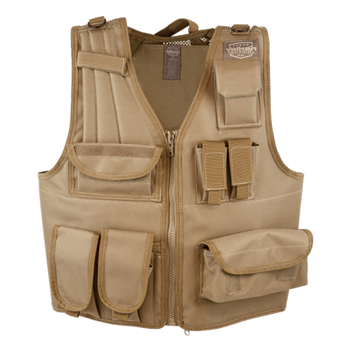 FEATURESAvailable in Black, Tan and OliveAdjustable side straps for a one size fits mostFits up to 4 M4 sized magazinesFits 2 pistol magazinesNon Slip padded shoulderEasy close zippered frontRear hydration pocketRadio pocket2 utility pocketsHydration and radio line guidesHook and loop name spaceHeavy duty grab handle