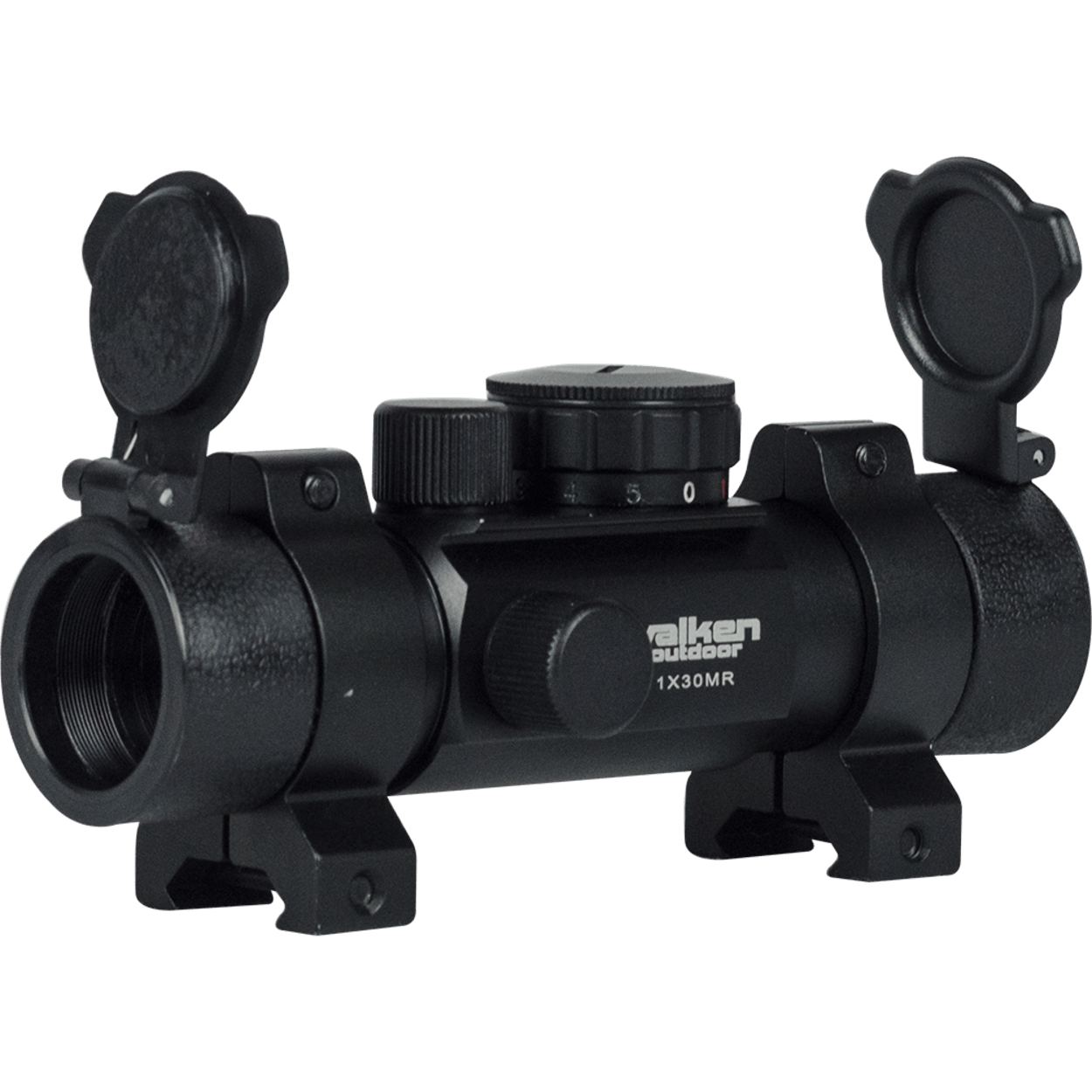 DETAILS1X30MR has four reticles that can be switched instantly.The reticle dots are illuminated in two colors: Green and Red.Includes weaver rings that work with any Picatinny/Weaver rails or bases.1X30MR has standard 30mm main tubeCompact quick target acquisition sight great for use on moving targets or for CQB task forcesEye relief: Unlimited Sight overall length: 6″Accessories included: Flip open lens covers, and rings.Center height of rings: 22mm
