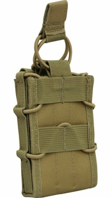 MOLLE attachmentsAdjustable bungee retentionFits a variety of mag sizesOpen top quick releaseMaterial: 600D CorduraSizes: 12x8x3 cmAvailable Colours:BlackGreenCoyoteVCAM