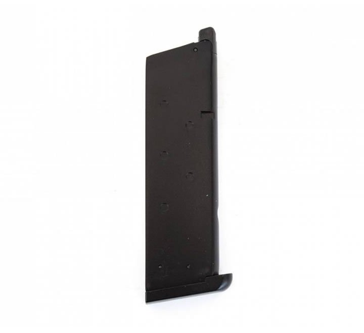 Standard 15rd single-stack magazine for WE 1911/MEU series. Standard 15rd magazine for WE MEU and 1911A1 single-stack loading pistols. Metal construction, black finish with a big bumper on the bottom of the magazine