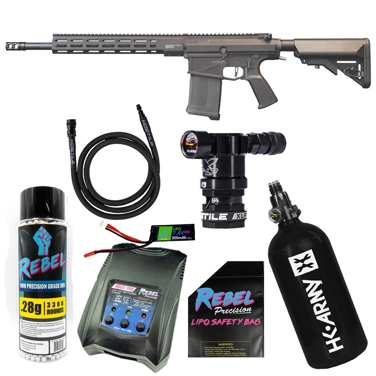 For the serious DMR player, Wolverine Airsoft proposes a big, bold, and beautiful MTW 308. Accepting SR25 AEG magazines, this semi-automatic replica is designed for those who want sniper power and precision with the flexibility of faster follow-up shots to effectively address multiple targets. Built on the MTW-Spec platform, the MTW-308 is a true HPA marksman rifle powered by the INFERNO Gen 2 HPA engine and features intrinsic alignment, real steel compatibility, and unmatched durability and performance.FeaturesGenuine billet aluminum CNC-machined 308 receiver setEmpty mag detection ready (with MTW spec 308 mags)Invictus 13 MK-1 6160 aluminum rail with M-LOK on 7 sides14.5 or 16 outer barrel with included 1.5 extensionToolless disassembly using real steel pins and detents and hardpoint disconnect feature2-position, short-right-side ambi-selector for safe and semi-auto functionMTW-spec for insane customization including 3-position selector and Wraith X with 308 adapterSpartan Electronics with 308/Shotgun firmwareCompatible with A&K and Classic Army style SR25 AEG magazinesTactical FeaturesDLG Premium Real Steel GripCrane StockInvictus MS-1 flash hiderFixed Rear Airline ConnectorThis Bundle Also Includes:1xRebel HPA Battery1xHK Army 48ci Tank and Reg1xHK Army XLP Top Port HPA Regulator and Flex Line1xRebel Smart Charger1xRebel Safety Battery Charging Bag1xBottle of Rebel 0.28g BBs